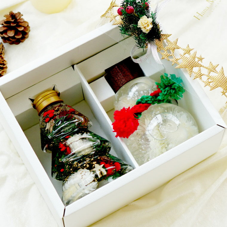 ハーバリウム セット 【あす楽16時まで】 2本セット クリスマス ツリー ハーバリウム ギフト 『ウィンターハーバリウムギフトセット』 花 プレゼント 誕生日 ミニツリー 記念日 フラワーボトル 植物標本 雪だるま お祝い 贈り物 送料無料 即日発送 卓上 インテリア