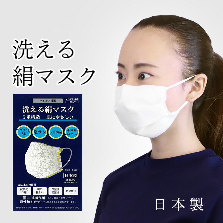 洗える絹マスク ウイルス対策 五重構造 日本製 シルク 絹 【 マスク ますく 抗菌作用 洗える ノーズワイヤー入り 肌にやさしい 】
